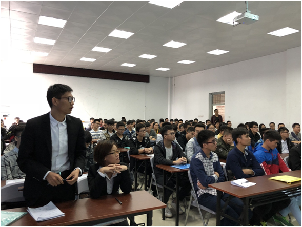 宣讲会开始前,公司对应聘学生进行了线下笔试。宣讲会上,公司负责人详细介绍了公司的发展史、特色优势、招聘岗位类别、应聘要求以及薪资待遇等情况,并鼓励我院学生到公司就业。宣讲会结束后,公司HR按照笔试成绩依次对来应聘的学生进行面试,并对面试和笔试表现优秀的学生进行了签约沟通,整个招聘会顺利进行。