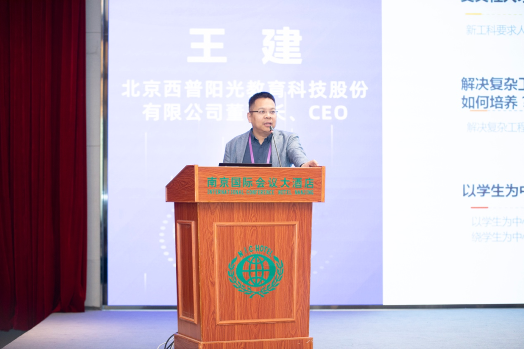北京西普阳光教育科技股份有限公司董事长、CEO王建发表“基于OBE理念可视化教学平台的探索与设计”主题报告
