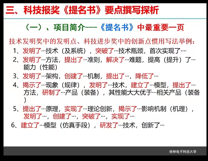 复旦大学赵兴明教授报告截图 之后桂林电子科技大学国家级人才、博士生导师、教授、百千万人才工程国家级人选孙延希结合个人报奖经历,主要介绍科技奖励工作及基本流程简介、科技奖提名书报奖前的准备、科技奖提名书要点撰写等内容。