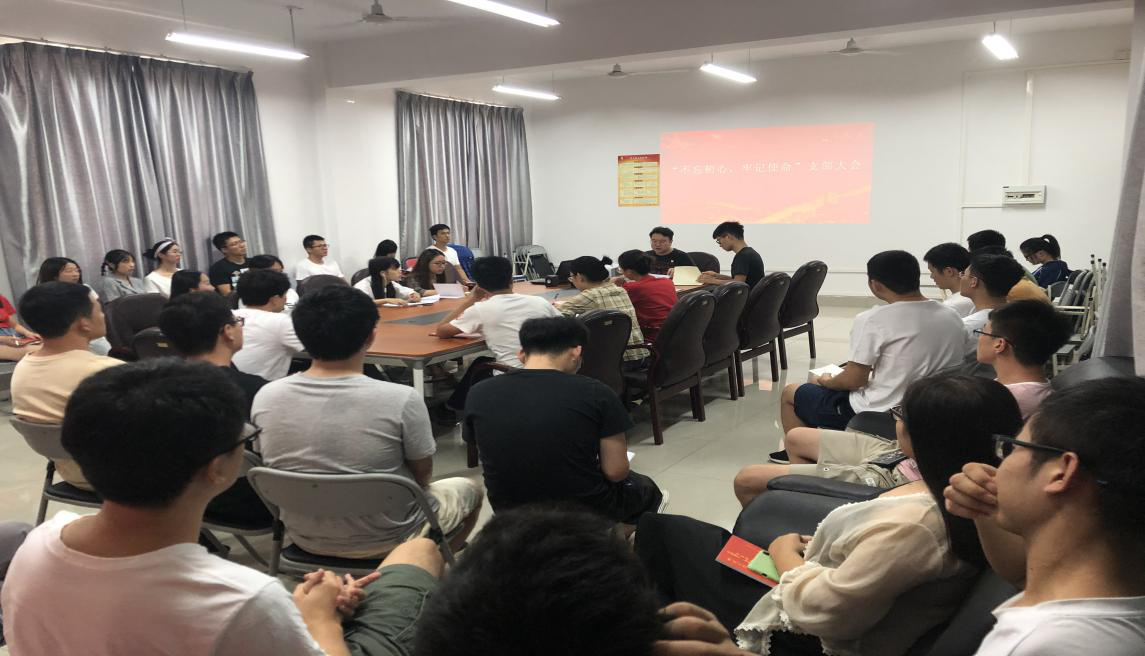 学院研究生党支部9月26日在立信楼02501号会议室召开“不忘初心、牢记使命”主题集中学习会。本次会议由党支部书记尹新哲同志主持,全体党员、入党积极分子参加会议。