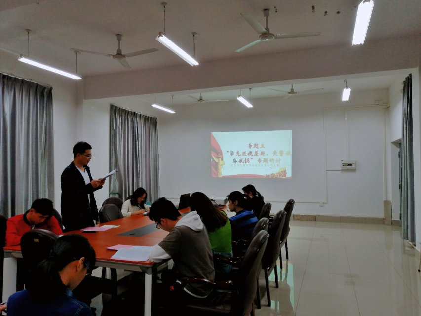 10月31日中午,学院本科生第一党支部的全体党员在立信楼02501会议室召开“不忘初心、牢记使命”主题教育“学先进找差距、受警示存戒惧”专题研讨会。会议由党支部书记蒋琼同志主持。 研讨会上,蒋琼同志带领支部党员们共同学习《中国共产党章程》、《中国共产党纪律处分条例》等专题有关文件和条例的主要内容和精神,选取了近年来中央、自治区查处的违反政治纪律、政治规矩的典型案例,通过反面教材进行警示教育。在会上,大家还共同观看了张富清、黄文秀、杜富国等先进典型的宣传视频。 通过学习研讨,支部党员们深受启示,大家纷纷表示,作为新时代的一名党员,要对照先进典型,以先进人物为榜样,结合自身实际,自查自身差距与不足,坚定理想信念,增强担当实干,甘于奉献,做好学习计划和职业生涯规划。同时以反面典型为警示,严格遵守党纪党规,牢守为人处世的底线,坚定政治立场,锻炼党性修养,不忘初心,勇担使命,为实现中华民族伟大复兴而努力奋斗!