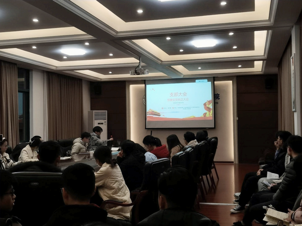 大会围绕接收预备党员:张煜可,莫金福,丁春伟,王露颖,赵成平,罗志锋,龚雅灵,潘天乐,黄晓倩,覃宝莹10名同志成为中共正式党员进行讨论和表决。会议严格按照党组织预备党员转正程序执行,首先,由张煜可等10名预备党员从思想、生活、学习、工作等方面对自己在预备期间的个人情况进行汇报,再由培养人介绍相应预备党员预备期的考察情况。其次,以上10名预备党员表达自己的决心与态度后进行记名投票表决。随后,大会对张煜可等10名预备党员的转正议题进行讨论和表决,并由支部正式党员采取无记名投票的方式进行票决,邹文锋同志统计票数并宣读大会决议:张煜可,莫金福,丁春伟,王露颖,赵成平,罗志锋,龚雅灵,潘天乐,黄晓倩,覃宝莹这10名预备党员投票通过,成为中共正式党员。