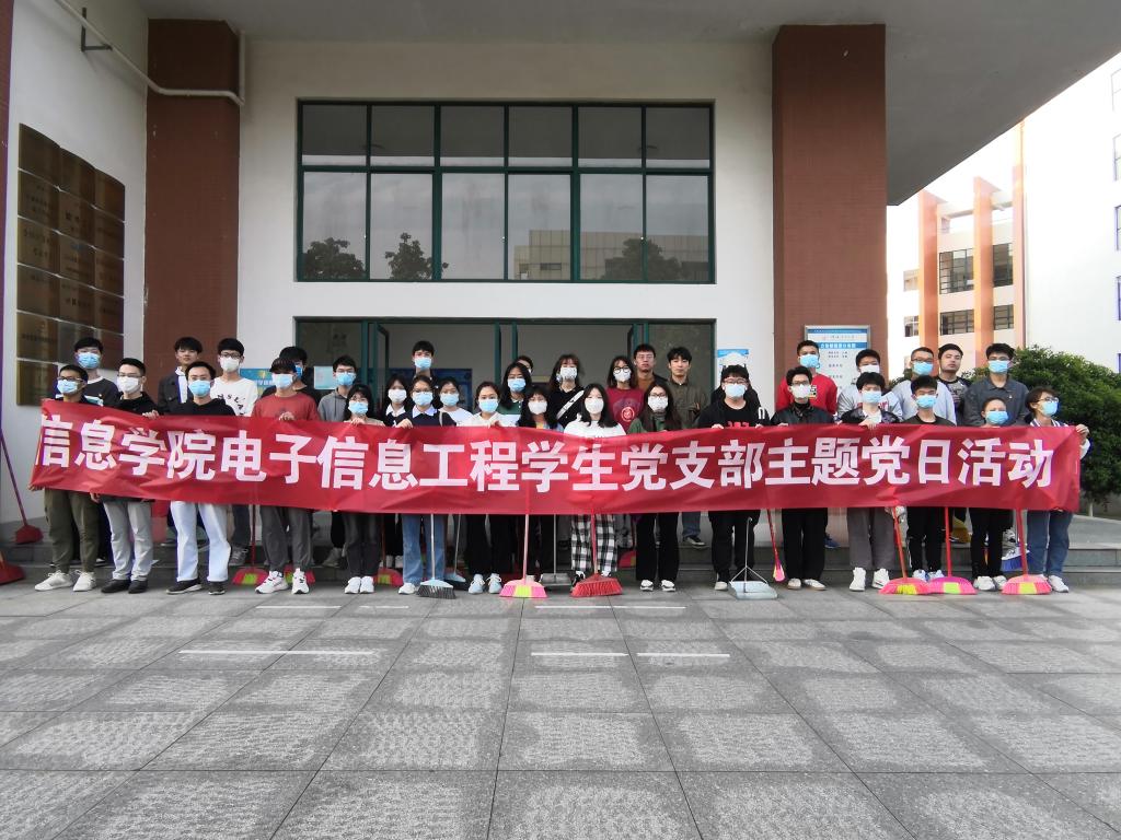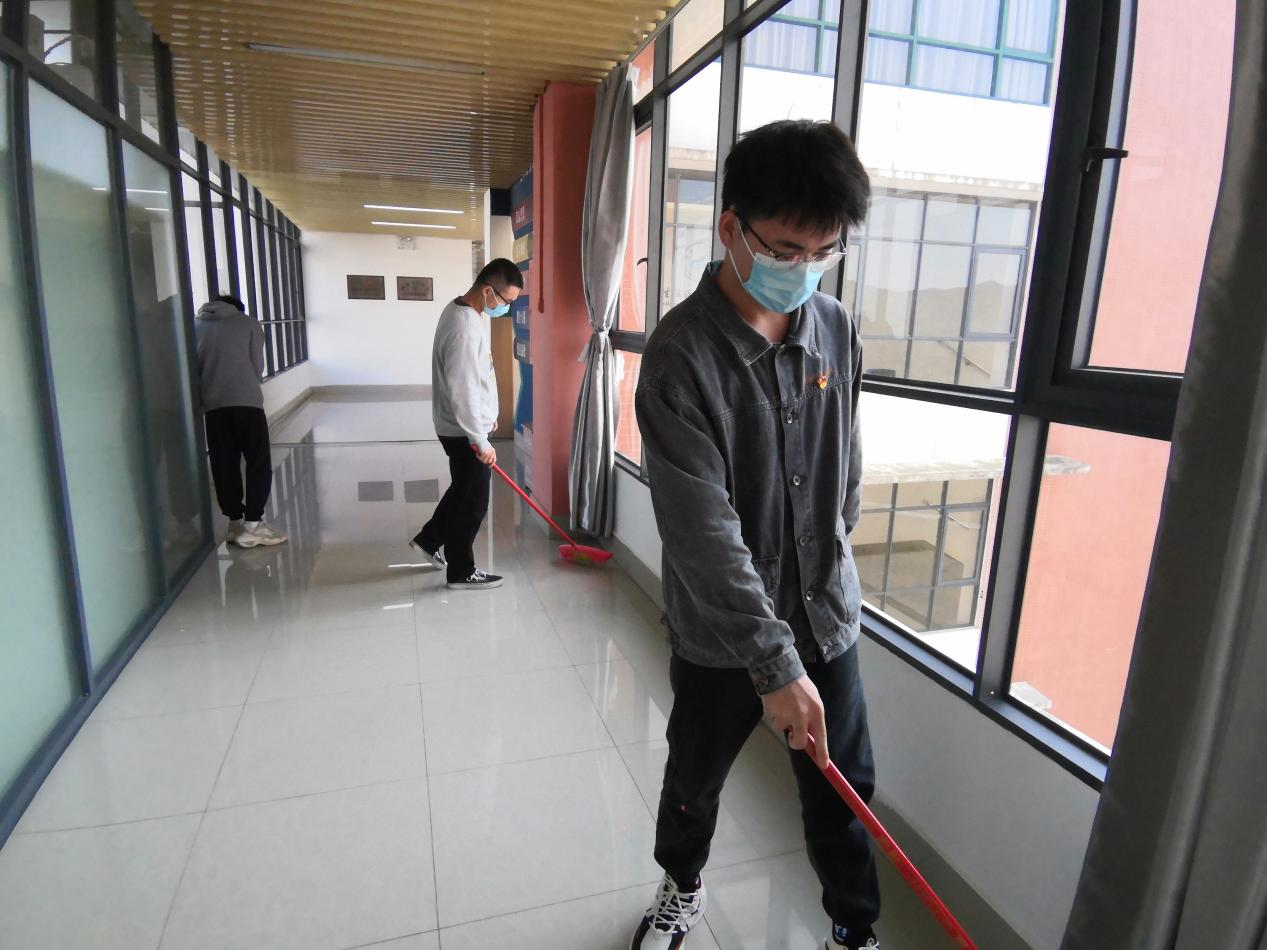 为进一步发挥党员模范带头作用,增强党组织的凝聚力、战斗力和号召力,4月19日下午,电子信息工程学生党支部开展以“发扬劳动精神,营造优良环境”为主题的党日活动。在立信楼四楼和五楼组织义务清扫活动,党支部全体党员和入党积极分子参加。 活动中,同学们充分发扬不怕脏、不怕累的优良品德和团结协作的良好风貌,分工协作、干劲十足,活动开展井然有序。大家相互合作,认真、细致的打扫每个角落,确保卫生不留死角。经过了一个多小时的劳动,为学院师生营造了一个整洁卫生的工作学习环境。 最后,支部书记闫振南老师指出,党日活动在培养成员们思想觉悟的同时也要注重对理论的实践,今后党支部将开展更多有特色、有意义的党日活动,希望支部成员们积极参与,为身边的同学们树立良好的榜样,在日常生活中处处起到模范带头作用。 此次主题党日活动把组织生活与清扫环境相结合,不仅美化了工作环境,还增强了各位党员的的服务意识和劳动观念,用实际行动诠释和践行了党员的先锋模范作用,为营造整洁有序的学院环境贡献了自己的一份力量。 党员们积极参加劳动教育 党支部成员合影