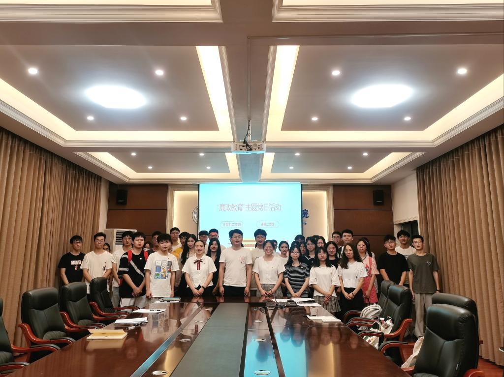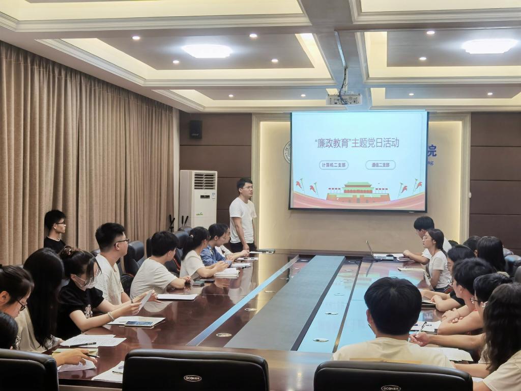 为强化党员廉政意识,深入推进廉政文化进校园工作。2022年6月10日晚,计算机学生第二党支部联合通信学生第二党支部在02507会议室开展以“廉以养德、洁以修身”为主题的党日活动。本次活动由蔡志勇同志主持,两个支部全体党员参加会议。