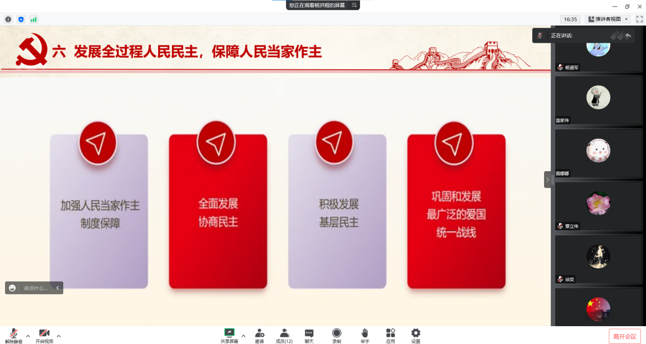 为深入学习贯彻习近平新时代中国特色社会主义思想,巩固拓展党史学习教育成果,2022年11月26日晚,计算机第二学生党支部通过腾讯会议开展“学习党的二十大”主题党日活动。支部全体党员参加,支部书记蔡志勇主持。