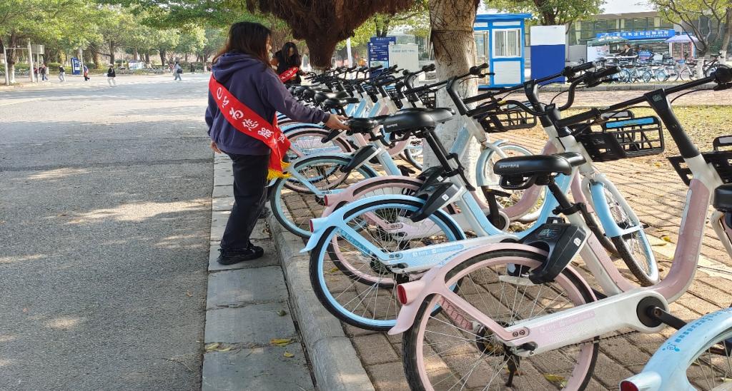 活动期间,党员志愿者们合理分工、相互合作,把教学楼边、食堂边随意停放、倒放的共享单车主动扶起并有序摆放整齐,将占道、乱停乱放的共享单车推到指定停放点,对有污垢的共享单车进行清理擦拭,为大家创造了良好的用车环境。同时,党员志愿者们还主动将地面上的垃圾捡起,并向过往的学生宣传文明骑行、有序停放的做法,引导骑行者将共享单车停放在指定区域。