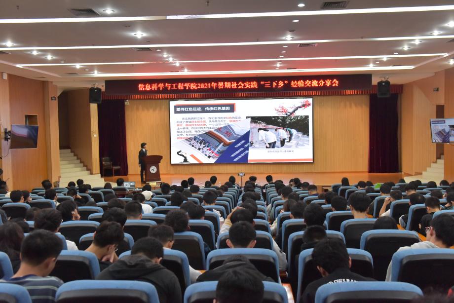 为深入贯彻习近平总书记关于教育的重要论述精神和“助力乡村振兴”的社会实践主题,更好地总结我院2021年暑期“三下乡”社会实践活动好经验、好做法和优秀成果,不断增强社会实践育人效果,我院于11月2日在雁山校区图书馆报告厅举办了2021年暑期“三下乡”社会实践经验总结交流分享会。学院团委副书记李艮老师、王发老师,党政办主任孟德老师以及2019级辅导员蔡志勇老师出席本次会议,部分学生代表参加会议。 活动开始,全体与会人员观看三下乡活动宣传视频,回顾今年暑期“三下乡”我院各实践团队的风采。随后,是我院四支优秀实践团队代表作经验分享。他们一一介绍了队伍的前期准备工作,包括选题的确定以及团队的组建,讲述了他们在实践活动中的经历,分享了如何做好服务点接洽事宜,展示了他们实践团队的丰硕成果,包括视频宣传等等,分享了团队经验和收获。最后,李艮老师充分肯定了暑期三下乡实践团队的成果,他告诉同学们,暑期三下乡活动能使同学们在实践中得到了锻炼,在交流中认识自我、面对困难能够砥砺前行,在此过程中不断完善自我,努力成为一名优秀的社会实践者,希望同学们今后继续积极踊跃参与社会实践锻炼。 此次活动的成功举办,充分展示我院学生不怕困难、勇于担当、创新实践、乐于奉献的精神,也为大家学会将所学知识与助力脱贫攻坚、乡村振兴有机融合树立了榜样。