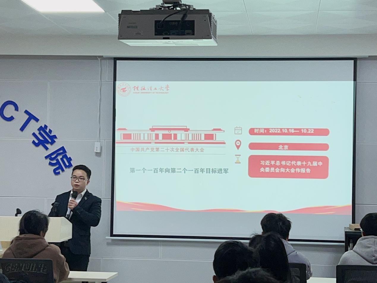 为深入学习宣传贯彻党的二十大精神,激励青年学生以新姿态、新面貌投入到新学期,21级电子信息类4班于2月24日下午在02525教室召开了“青春践行二十大”示范主题班会。学院副院长邓昀、学工办全体辅导员和各年级学生代表共同参与本次班会。 本次班会紧紧围绕“爱国、团结、奋斗、科学、互助”五个关键词展开,主要从“学一学党的二十大报告原文”、“讲一讲党的二十大和我的‘二十岁’”、“榜样的力量”以及“青春践行二十大”四部分展开。 班会上班主任陆朝森老师带领同学们一起重温中国共产党百年奋斗的光辉历程和伟大成就,同时分析同学们的日常生活与五个关键词之间的密切联系,进一步引导学生深刻理解党的二十大精神,进而凝聚共识、汇聚力量。通过集中观看中国共产党国际形象网宣片《CPC》,让同学们深刻领略了先进模范人物的风采,坚定了同学们为中华民族伟大复兴而团结奋斗的信念!同学们纷纷发言,表述自己的理解、认识和感悟,传达出信息学子们作为担当民族复兴大任的时代新人的决心。最后,班主任总结发言,进一步引领青年团员把思想和行动统一到党的二十大精神上,结合学生专业特点,提出学习和生活方面的建议,激励同学们艰苦奋斗,拼搏进取。 通过本次班会学习,同学们不仅深刻认识到党的二十大的深远意义,而且感受到时代对青年大学生的召唤,纷纷表示将以党的二十大精神为指引,聚焦国家的发展和社会需要,努力学习,提升知识储备,加强品格锤炼,不负使命、矢志拼搏,自信自强、守正创新、踔厉奋发、勇毅前行,为全面建设社会主义现代化国家、全面推进中华民族伟大复兴而团结奋斗。 班会现场一 班会现场二