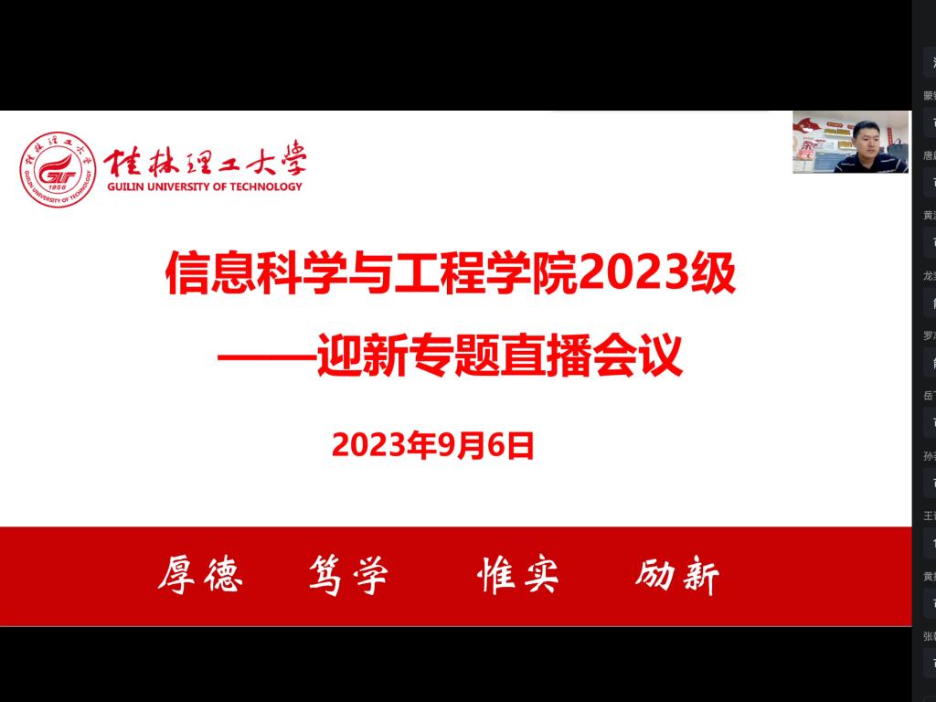 报到在即,为方便同学们顺利到校报到,尽快适应学校学习生活,9月6日晚,学院特组织召开2023级新生入学报到专题直播会议,会议由2023级辅导员朱鹏飞主持,2023级新生及家长参加会议。 会上,朱鹏飞首先对623名新生加入信息大家庭表示了热烈欢迎,祝贺他们即将开启精彩的大学生活。接着,朱鹏飞耐心地讲解了开学时间、报到注册地点、交通方案和校内快递等内容,为新生献上了一份温馨的入学指南。 朱鹏飞提醒新生在入学报到过程中要注意以下几点:一是来校途中,注意交通安全;二是注意防盗,保管好随身携带的物品,防止丢失或被盗;三是天气炎热,注意防暑降温,请不要到江河湖泊等水域游泳;四是当前电信诈骗猖獗,新生们一定要增强安全意识。最后,新生及家长就入学报到的各类问题与新生辅导员进行了充分交流,针对新生和家长普遍关心的问题,新生辅导员做出了详细地解答。 本次会议的召开,有利于2023级新生顺利地完成入学报到,更快、更好地融入桂工大家庭,以更加昂扬的姿态迎接大学生活。 会议现场