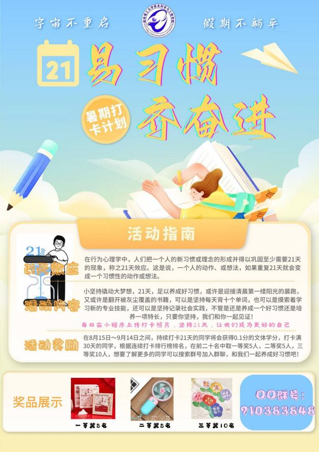 学院“易习惯,齐奋进”暑期自律打卡活动取得圆满成功