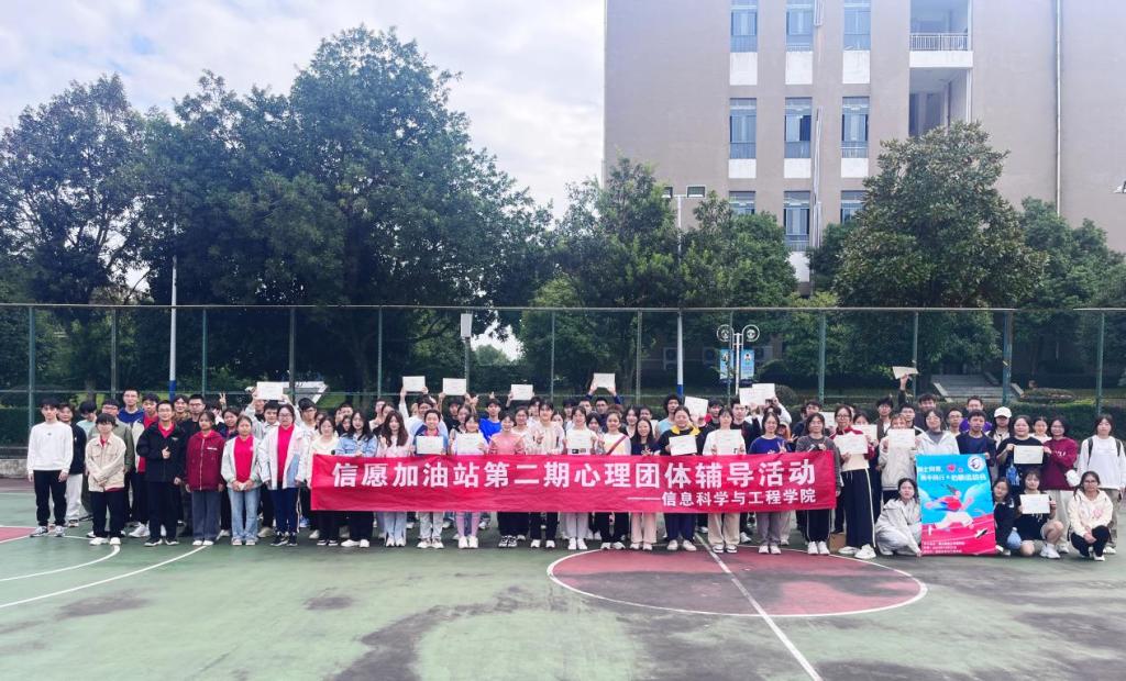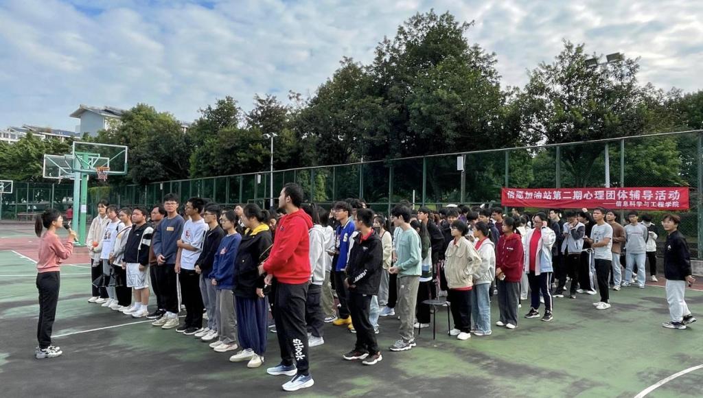 为引导学生关注心理健康,倡导同学们通过运动释放身心压力,丰富校园文化活动,学院于10月21日在雁山校区三号篮球场举办了心“晴”运动会暨信愿加油站第二期心理团体辅导活动。 活动伊始,心理辅导员王东京老师为参赛选手讲解了团辅游戏规则和注意事项,随后分为四人组和六人组赛道进行比赛,选手们互帮互助,团结友爱,展开了一场有趣而激烈的身心较量。根据比赛得分,指导老师为获奖队伍颁发奖状,最后全体参赛选手及工作人员合影留念,定格这美好的一刻。 此次活动不仅让同学们在愉悦的氛围中放松身心,更感受到了生活的美好与团结向上的力量,在学院内泛起积极向上的心理健康之风。 现场照片(一) 现场照片(二) 活动合影