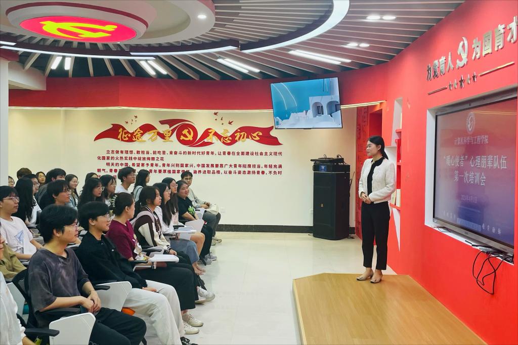 为提高学院心理健康教育工作水平,加强学生朋辈心理队伍建设,4月1日中午,学院在雁山校区嘉园一站式学生社区“思政大讲堂”召开“暖心使者”心理朋辈队伍第一次培训会。培训会由学院心理工作专项老师李秋怡主讲,学院各年级心理委员、宿舍信息员、心Yu社成员参加培训。 培训会上,李秋怡老师围绕“朋辈心理队伍角色定位”,“工作职责”,“朋辈工作伦理常见误区”,“朋辈心理助人工作方法”四个方面展开培训,为同学们深入讲解了朋辈心理队伍的职责、工作内容及其在高校心理健康教育体系中的关键作用。她特别强调,心理朋辈互助员不仅是学生心理健康的守护者,更是连接学生与专业心理咨询服务之间的桥梁。接着,李秋怡老师结合近期举行的学校心理朋辈技能辅导大赛,深入剖析了如何识别心理危机以及在心理危机干预中的有效方式。最后,她勉励心理朋辈互助员应不断提升自己的专业技能,通过培训、阅读及经验交流等途径,进一步明确自身的岗位职责,增强心理服务的能力,从而更好地发挥朋辈间“自助-助人-互助”的综合功能。 本次培训会具有深远的实践指导意义,参会学生受益匪浅。通过此次培训,学生不仅明确了自己的工作职责,更掌握了处理同学们各种心理问题的实用方法。今后学院将持续加强心理健康教育,为学生提供更优质的服务,营造一个积极、健康的校园心理文化氛围。 李秋怡作专题培训 培训会现场 (一审:李秋怡;二审:孟德;三审:黎超业)