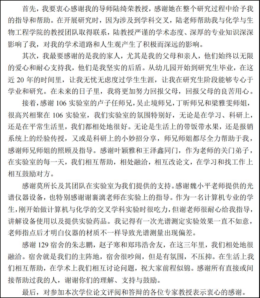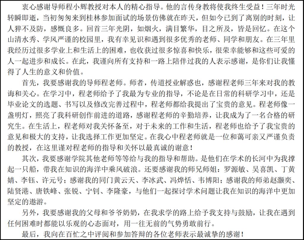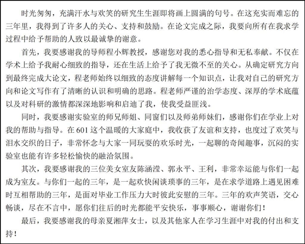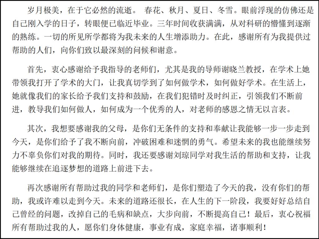 三载悠悠,研途漫漫。提笔谢辞,落笔为终。为促进和谐导学关系建设,鼓励学院毕业生学成致谢,感恩前行,展现浓厚的师生情谊,学院研究生会于2024年6月3日至6月8日举办“致谢中的师生情”毕业论文致谢征集活动。 本次活动面向学院2024届毕业研究生采取线上征集、线下评选的方式,坚持公平公正公开的原则进行评选。学院研究生辅导员号召同学们积极报名投稿,记录下毕业时候最想对导师、老师以及同学说的话。同学们积极参与,主动投稿。此次活动评委由学院研究生会主席团担任,经过认真评选,共评选出一等奖1名,二等奖3名,三等奖3名。 同学们纷纷表示,今后将永远保持积极学习的态度,永葆初心,心系母校,不忘师恩,积极投身全面建设社会主义现代化国家新征程,创造属于自己的灿烂人生。 作品(一) 作品(二) 作品(三) 作品(四) (一审:蔡志勇;二审:孟德;三审:黎超业)