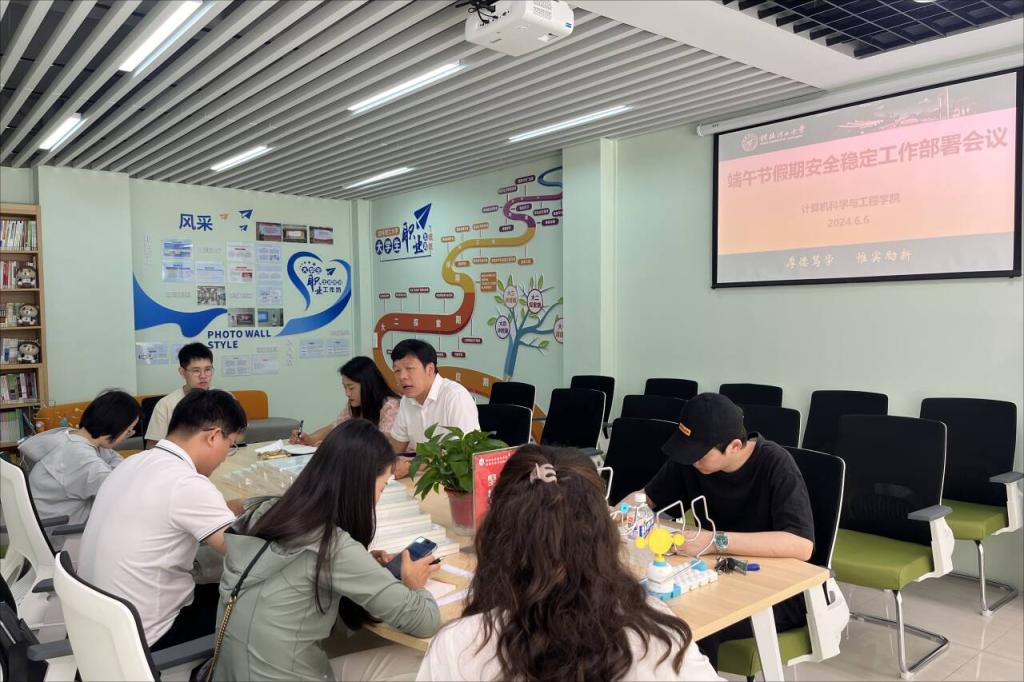 为加强学生管理,增强师生安全意识,确保假期的安全稳定,学院于6月6日在19栋“嘉园”一站式学生社区召开了端午节假期安全稳定工作部署会,会议由学院党委副书记黎超业主持,各年级辅导员参加。 会上,黎超业对端午节假期安全稳定工作进行了具体部署。他首先传达了学校关于端午节假期安全稳定工作的相关要求,并结合学院实际情况,提出了以下四点具体要求:一是加强安全教育和隐患排查,教育引导学生外出期间提高人身安全、财产安全、网络安全、交通安全、饮食安全意识,重点做好防溺水、防火、防盗、防传销、防诈骗等工作;二是在假期前后加强对学生的管理,对离开桂林市区的学生和在外住宿的学生要严格执行请销假制度,做好家校联系沟通,切实掌握学生去向;三是辅导员要在岗值班,加强对放假期间留校学生的教育管理,对外宿学生及在外实习学生等重点学生群体做好监测管理工作,确保假期期间学生安全;四是强化应急处理,制定完善的应急预案,确保在突发事件发生时能够迅速响应、有效处置;同时,加强应急演练,提高师生的应急处置能力。会议最后,黎超业就如何贯彻落实本次会议精神进行了强调,他要求全体师生要高度重视安全稳定工作,落实各项安全举措,营造安全稳定的校园环境。 本次会议的召开,为学院端午节假期的安全稳定工作提供了有力保障,学院将以此次会议为契机,进一步加强安全管理,增强师生安全意识,确保学生的安全稳定。 会议现场 (一审:李雪;二审:孟德;三审:黎超业)