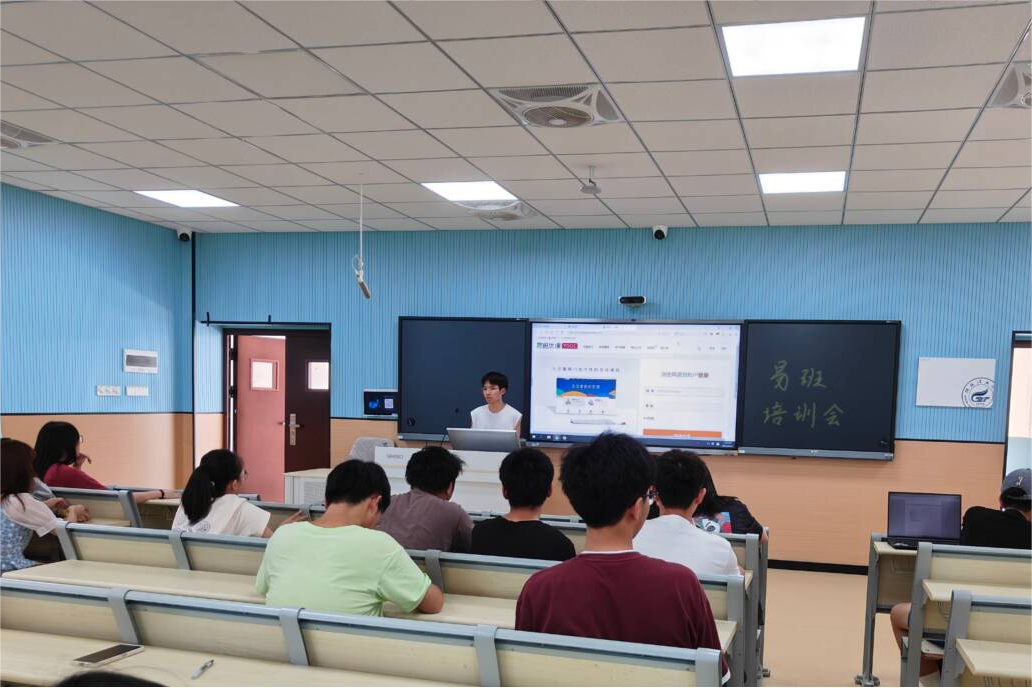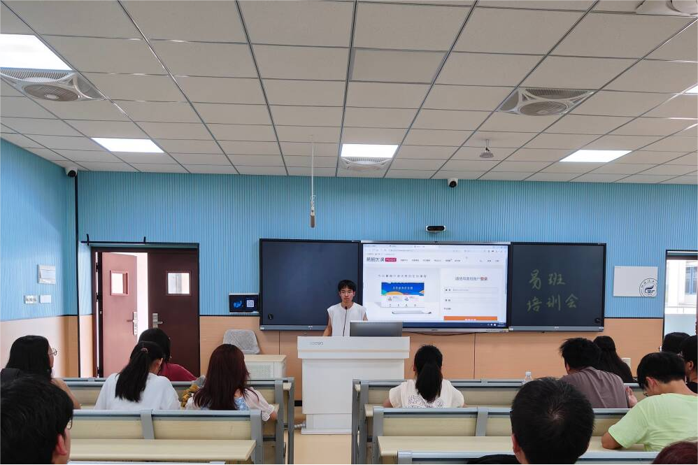 为使学院易班· 融媒体中心留任的各部门主干成员深入了解易班各项事务,学院于7月4日在06601教室邀请校易班对学院易班·融媒体中心进行培训。 培训会上,校易班负责人精心设计了针对性强的培训课程,内容涵盖了易班快搭的使用,对易班考核中的微社区、轻应用的分数分布情况进行了详细讲解,包括易班活动、客群发布要求、证明材料注意事项、后台数据提取等关键内容。此外,他们还提出了两点希望:一是明确自身职责,做一名合格的易班负责人;二是积极融入各部门团队,团结友爱,共同为易班后续的发展贡献力量。参与培训的成员积极学习,认真做好笔记。 通过此次活动,学院易班留任成员系统学习了易班相关事务操作流程,各方面能力得到了显著提升,相信在以后的日子里,学院易班定能取得更好的成绩。 培训会现场(一) 培训会现场(二) (一审:李雪;二审:孟德;三审:黎超业)