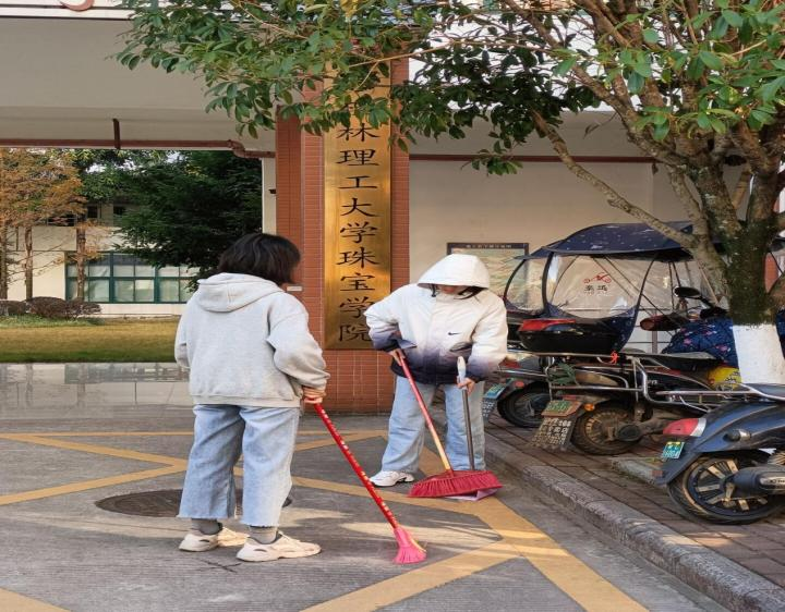 寒风拂尘,净冬焕新,为营造整洁、优美、文明的校园环境,弘扬志愿服务精神,12月28日,计算机学院奋斗社在教学楼二栋开展了“青春点亮校园,志愿守护绿色”清扫校园行动,众多学生志愿者积极参与其中,以实际行动为校园环境贡献力量。 活动当日清晨,阳光刚刚洒在校园的小径上,志愿者们便已准时集合完毕。他们手持扫帚、簸箕等清扫工具,前往教学楼外围区域。抵达目的地后,奋斗社负责人迅速组织大家进行分工,按照不同的区域将志愿者们分成若干小组,让志愿者们明确各自负责的清扫范围,确保每一个角落都能得到彻底的清理。紧接着,志愿者们迅速投入到清扫工作中。他们沿着教学楼的外墙,仔细清扫着地面上堆积的落叶、包装袋等各类垃圾。对于墙角、树根周围以及垃圾桶附近这些容易藏污纳垢的地方,志愿者们更是弯下腰,仔细用扫把清扫,不放过任何一处卫生死角。经过几个小时的辛勤努力,教学楼外围的环境焕然一新。 “爱自然如同爱己身,护环境方得山川秀”。此次清扫校园活动不仅美化了校园环境,增强了同学们的环保意识和劳动意识,更彰显了学院学子的青春担当与奉献精神。未来,学院奋斗社将持续开展多样的志愿服务活动,让青春在奉献中绽放更加绚丽的光彩,为构建美丽校园持续助力。 (一)志愿者们在清扫校园 (二)志愿者们在清扫校园