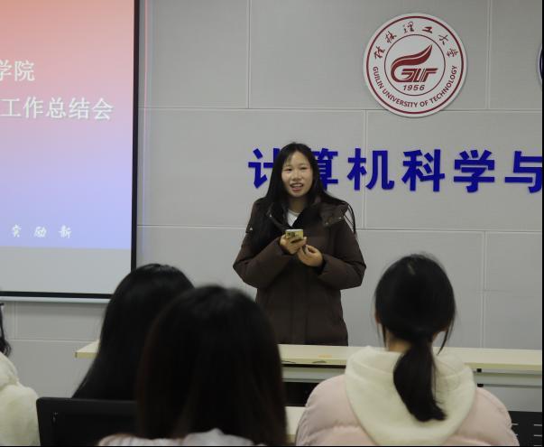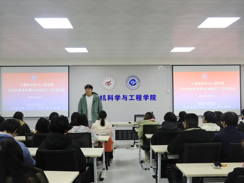 为加强班团骨干队伍建设,总结班级学生工作经验,增强学生干部自我教育、自我管理、自我服务、自我监督意识,1月10日,计算机学院在02525举行了2024-2025学年秋季学期2024级学生干部学期工作总结会。本次会议由辅导员劳家宝主持,学工组长孟德和2024级全体学生干部参加会议。 会议伊始,劳家宝对本学期的班级工作进行了总结,她表示各班干在军训、校运会、桂工杯辩论赛等各项工作推进中发挥了中流砥柱作用,凝心聚力,工作积极,发挥了学生干部的模范带头作用。同时,她也对下学期的工作提出了要求,希望每一位班干都能牢记自己的职责,秉持为同学服务的初心,遇到问题多交流、多协作,发挥榜样的力量,带动全班同学共同进步。