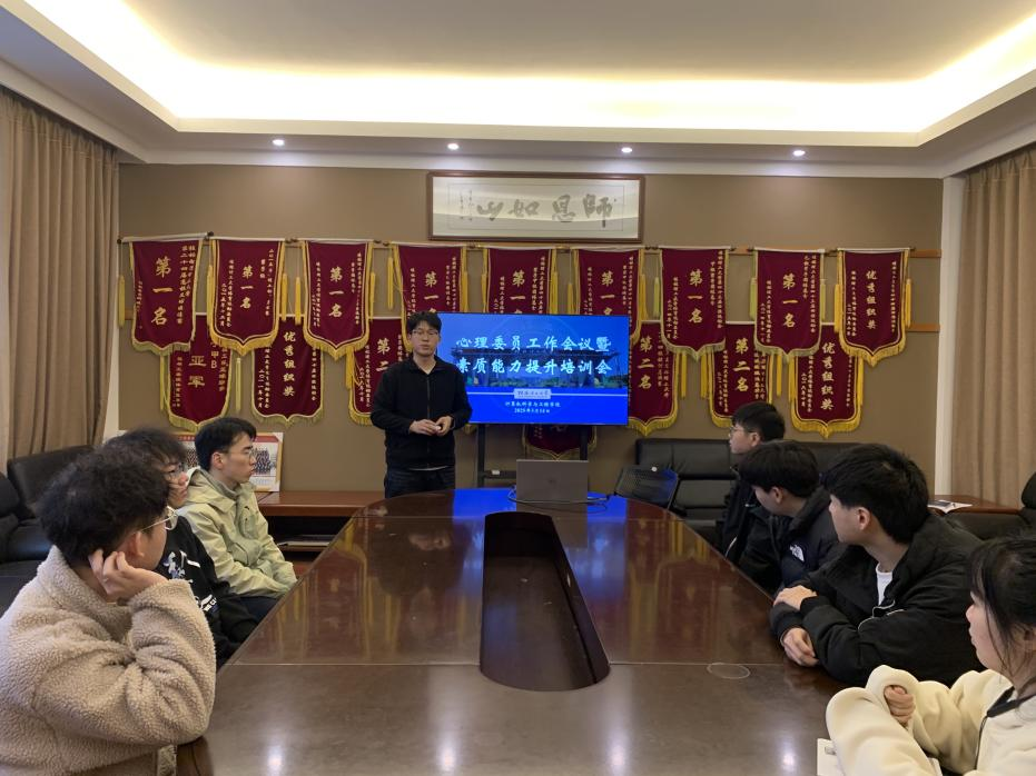 为进一步提升心理委员专业素养与工作能力,充分发挥心理委员在学院心理健康教育和安全稳定工作中的重要作用。学院于3月14日在02505教室召开了研究生心理委员工作会议暨素质能力提升培训会,本次培训由兼职辅导员申英龙主讲,学院全体研究生心理委员参加。 培训中,申老师首先强调了心理委员在心理健康工作中的不可或缺性。他指出,作为心理健康防线的重要一环,心理委员一是需要扮演好同学们身边的倾听者、支持者、引导者以及心理问题的“排雷兵”和师生间的“传声员”等多重角色;二是需要主动关注同学情绪状态,及时反馈并有效协助解决心理困惑。三是增强团队意识,凝聚班干部力量,完善沟通机制,共同为班级同学成长提供有力保障。 随后,申老师结合具体案例,深入剖析了同学们在学习和生活中可能遭遇的诸如焦虑、抑郁、失恋及人际关系紧张等心理问题,并详细指导心理委员在面对这些情况时应如何妥善应对。同时,还强调了心理危机预警的紧迫性和重要性,要求心理委员们时刻保持警觉。 此次培训会的举办,不仅为心理委员们搭建了一个宝贵的学习与成长平台,更为学院心理健康教育工作体系的完善提供了有力支持。相信在未来的工作中,学院的心理委员们将以更加自信、专业的姿态,肩负起守护同学们身心健康的重任。