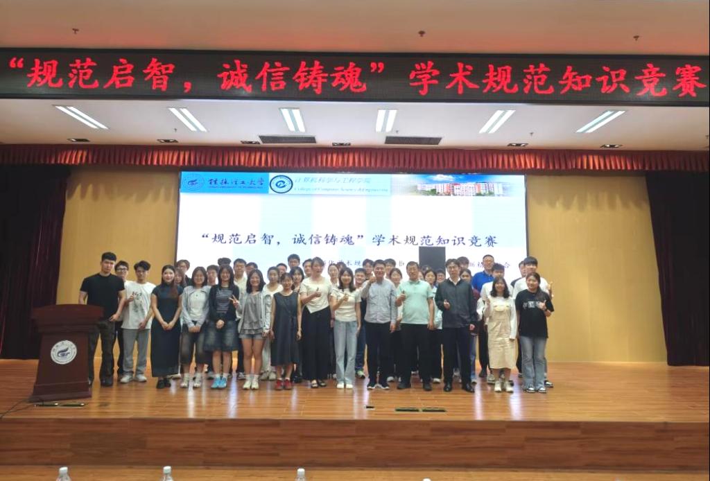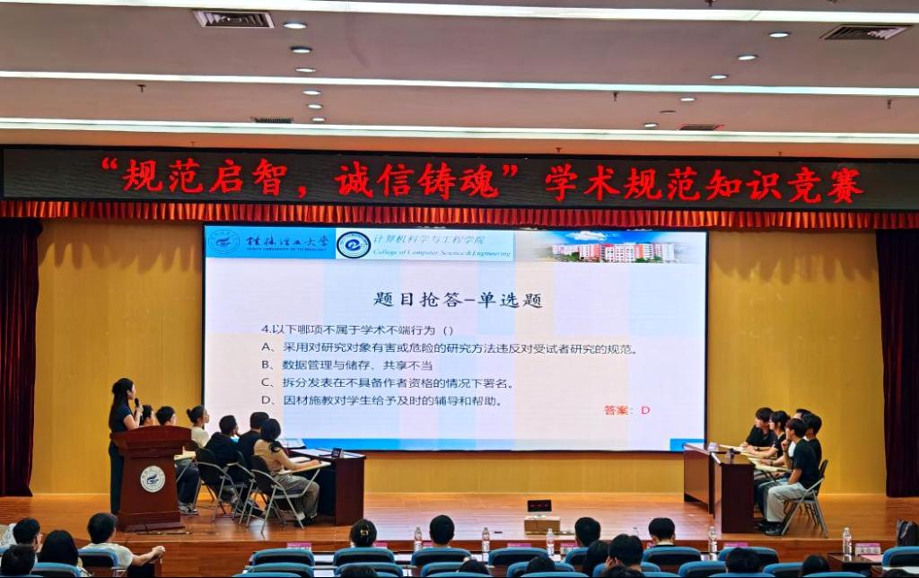 为进一步引导研究生强化学术规范认知,推动科研伦理与创新精神深度融合,2025年4月28日,由学院承办的太阳成集团tyc151cc“规范启智,诚信铸魂”学术规范知识竞赛在图书馆报告厅热烈开赛。来自全校各学院的参赛队伍及师生代表齐聚一堂,共同开启这场知识与品格的双重较量。出席此次活动的老师有艺术学院欧阳慧婕老师、旅游学院乔泽东老师、地球科学学院马诚佑老师、马克思主义学院张劲彪老师、材料科学与工程学院桂鑫老师、太阳成集团tyc151cc蔡志勇老师和朵佳亮老师。 太阳成集团tyc151cc团委副书记、研究生辅导员蔡志勇老师在致辞中指出,学校构建“知识普及+竞赛深化”的学术培育模式,致力于营造全员参与学术规范建设的浓厚氛围,希望通过本次竞赛切实提升师生学术规范素养,为学校学术研究高质量发展筑牢根基。 竞赛分为“逐梦答题”和“巅峰抢答”两个环节。首轮比拼中,各参赛队围绕学术规范核心内容展开较量,选手们凭借扎实的知识功底从容应答,展现出良好的学术素养。抢答环节中,四支并列队伍展开激烈竞答,抢答声与思维碰撞交织,将现场气氛推向高潮,充分彰显桂工学子严谨的学术态度与思辨能力。经过多轮激烈角逐,机械与控制工程学院一队斩获冠军,化学与生物工程学院、艺术学院代表队获二等奖,商学院、数学与统计学院、环境科学与工程学院代表队获三等奖。 此次竞赛不仅是学术培育成效的集中展示,更是一堂深刻的学术品德教育实践课。同学们深刻认识到,学术规范教育不仅是知识传递,更是守护科研净土的重要准则。通过竞赛中展现的严谨治学态度与诚信科研精神,激励广大研究生树立端正的学术观、科研观和道德观,培养学术自律意识与担当精神,在追求学术真理的道路上笃行不怠,为推动学术进步与科技创新贡献青春力量。