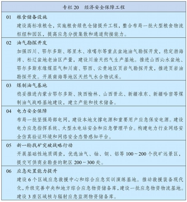 强化经济安全风险预警、防控机制和能力建设,实现重要产业、基础设施、战略资源、重大科技等关键领域安全可控,着力提升粮食、能源、金融等领域安全发展能力。