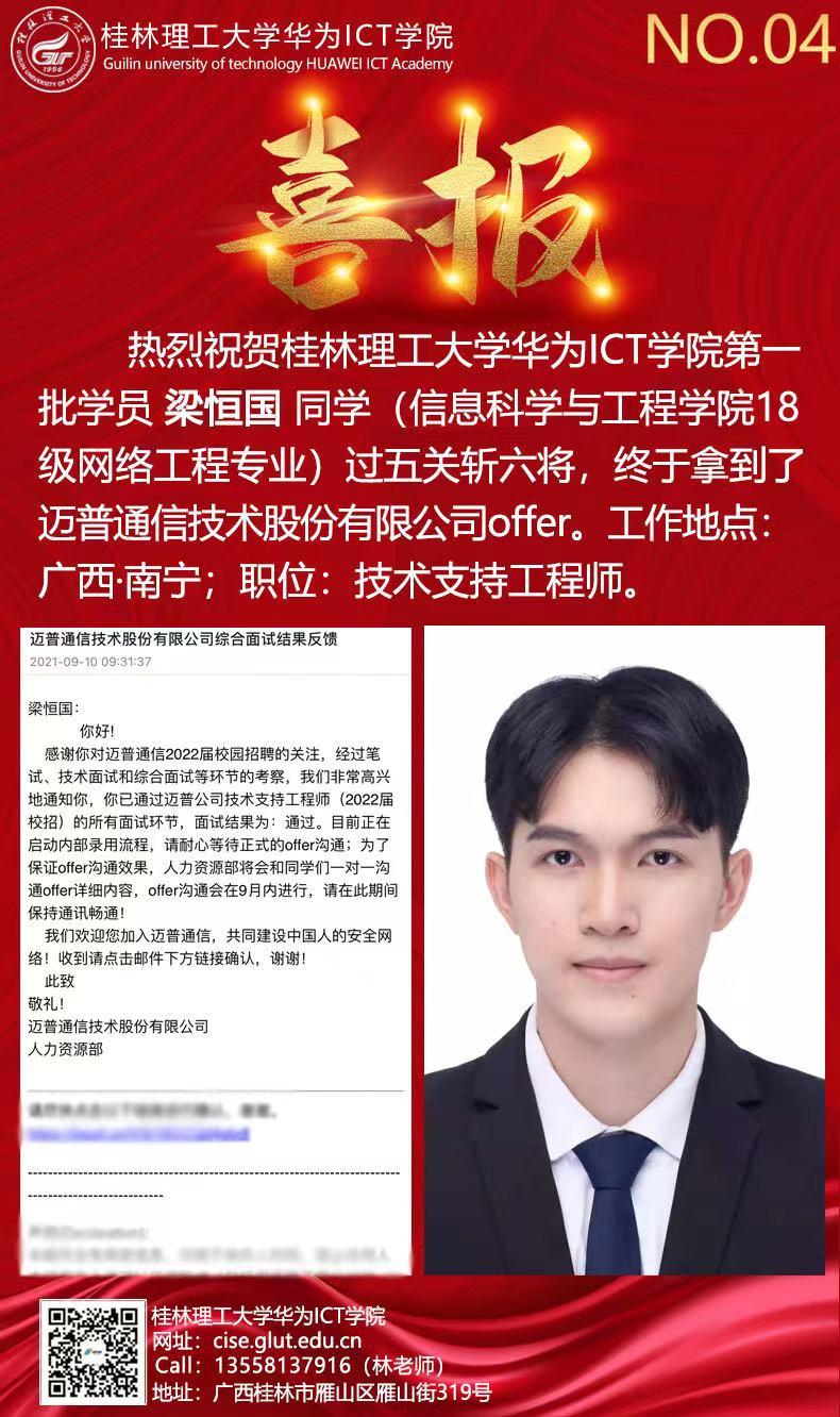 初秋时节,丰收在望!“金九银十”求职季,学院就业工作迎来喜讯——经过层层选拔和考核,我院2022届网络工程专业毕业生苏小婷、曾祥锋、徐浩翔和梁恒国等已顺利被知名上市公司录用。其中苏小婷、曾祥锋两位同学被绿盟科技集团股份有限公司录用,徐浩翔同学被奇安信科技集团股份有限公司录用,梁恒国同学被迈普通信技术有限公司录用,实现了高质量就业。 绿盟科技集团股份有限公司成立于2000年,结合5家海外子公司和50多个国内分支机构,持续打造全球化的一流网络安全中国品牌。公司主要为政府、金融、运营商、能源、交通、教育、医疗以及企业等行业用户,提供全线网络安全产品、全方位安全解决方案和体系化安全运营服务。奇安信科技集团股份有限公司成立于2014年,主要向政府、企业用户提供新一代企业级网络安全产品和服务。公司在世界多个国家和地区开展网络安全业务,凭借持续的研发创新和以实战攻防为核心的安全能力,已发展成为国内领先的基于大数据、人工智能和安全运营技术的网络安全供应商。 据悉,我院高度重视毕业生就业工作,积极拓展就业渠道,不断完善就业服务,全力做好就业指导和跟踪反馈工作。学院与华为公司合作建立太阳成集团tyc151cc华为ICT学院,全力支持院校打造服务区域经济发展的ICT人才产业链,为学子就业保驾护航。作为华为ICT学院第一批学员,四位同学被优质企业录取,是他们自身脚踏实地、潜心钻研、辛苦付出的必然结果,也是学院在就业工作中强化责任担当、积极主动作为的重要表现。 下一步,学院将继续认真贯彻落实上级有关部门和学校相关工作要求,努力做到就业服务不断线、招聘工作不掉链、精准帮扶不松劲,扎实推进学院2022届毕业生就业工作顺利开展。