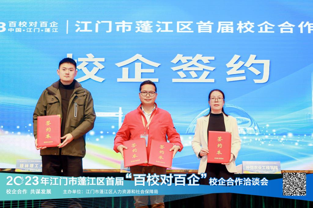 为深入贯彻党的二十大精神,落实党中央国务院稳就业保就业决策部署,为政府与高校、企业与高校搭建合作平台,促进政产学研合作,构建产教融合发展格局。3月26日至28日,学院党委副书记宋玉辉一行前往广东江门参加江门市蓬江区首届“百校对百企”校企合作洽谈会,此次参加洽谈会的企业共计166家。 学院积极把握此次参会契机,拜访了广东海信电子有限公司等30家企业,与现场很多优质企业在毕业生就业招聘、课程开发、共享师资和技术研发等方面对接洽谈,达成进一步合作交流意向,向企业推荐毕业生120余人。企业表示,企业与学校将进一步加强合作,挖掘更多岗位资源、创造更多实习和就业机会,助力毕业生高质量就业。 宋玉辉副书记表示,此次“百校对百企”校企合作洽谈会,为学院人才培养、专业建设、就业指导服务提供了依据。同时,使学院进一步全面了解用人单位人才需求,能够为毕业生创造更大的成长和发展空间,搭建更好的平台为毕业生就创业提供服务,更好的为社会经济发展提供人才支撑。 签约现场 活动现场