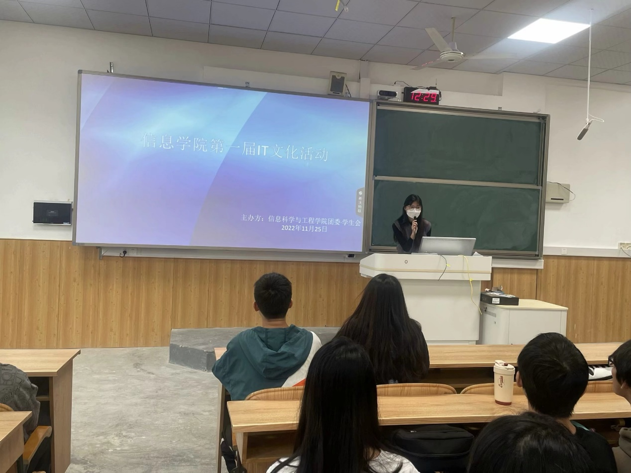 11月25日,学院团委·学生会成功举办了IT文化活动,旨在促进信息技术与当代文化的紧密结合,为学生创造一个理解和体验IT文化的机会。 活动吸引了一百多名学生和IT人文领域的老师前来参与。活动开始,特邀嘉宾进行了精彩的主题讲座,解读了数字技术对我们的工作、学习和生活方式的影响,分析了数字化时代IT与人文的连接点。在技术展示环节中,最新的技术产品和应用让学生们见识了编程、VR/AR、人工智能等前沿技术。在互动环节中,学生们有机会与技术专家面对面交流,获得了宝贵的学习机会。 此次活动的成功举办得到了广大师生的一致好评,学生纷纷表示,希望学院能够常举办此类活动,使他们能够更深入地了解到科技在当代文化中的重要作用。 活动现场