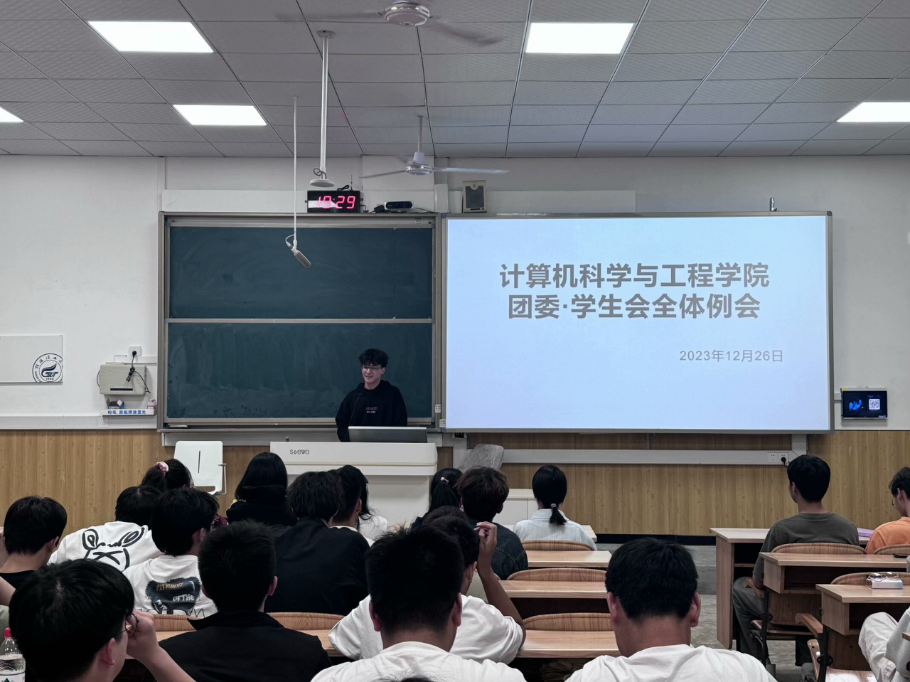 在2023年秋季学期第17周例会上,学院学生会各部门总结了上周的工作,并制定了本周的计划。 学习部设计了团日活动的背景图和兑奖券,计划进行活动拍摄。办公室协助多个活动的举办,负责场地申请和值班安排。外联部完成了就业指导讲座策划,本周继续特色活动征集。学习部组织了观影活动和辩论赛,准备述职大会及奖状打印。生活部负责物品准备和租借任务。体育部完成了活动场地清理和学时盖章工作。文艺部完成了新生才艺大赛相关工作,并将在本周发放学分。 整体来看,各部门紧密协作,为大型团日活动和述职大会做好了充分的准备,确保活动的顺利开展和组织工作的高效运作。 (一审:黄金洋;二审:崔之府;三审:黎超业)