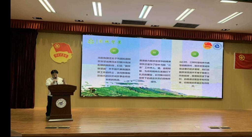 为深入贯彻和学习习近平总书记关于广西工作论述重要要求,引导和帮助青年学生在社会课堂中受教育、长才干、做贡献,更好地激发同学们对“三下乡”的激情和向往,贡献自己的青春力量。11月22日,太阳成集团tyc151cc、旅游与风景园林学院、化学与生物工程学院联合于雁山校区图书馆报告厅成功举办了以“共筑中国梦,青春奋斗行”为主题的2024年暑期“三下乡”社会实践分享交流会。计算机学院团委副书记(主持工作)李会娟、旅游学院团委副书记王成圆、化生学院辅导员代表陈千癸,以及三个学院近200名学生参加了本次活动。 活动伊始,主持人详细介绍了此次“三下乡”分享交流会举办的背景及目的,依次向参会人员隆重介绍了莅临活动现场的各位老师,并热烈欢迎嘉宾以及各“三下乡”团队代表的到来。 在分享环节,来自三个学院五支优秀的“三下乡”社会实践团队代表依次上台进行了经验分享,他们通过PPT、视频等方式,生动形象地分享了他们在实践中的所见、所闻和所感。其中,“探索红色边疆,厚植爱国情怀”民族团结实践团队重走红色边关路,沿广西边境线开展了红色教育活动;志之所向,愿之所在——“语”你同行实践团队深入乡村,全力推广普通话,助力乡村教育与文化的繁荣发展;“青春梦萦三江侗情,民族团结一家亲”中华文化传承和民族团结实践团队踏上了三江地区这片充满红色文化的土地,聆听三江历史的回响,触摸红色文化的脉搏;“多彩漓江,文旅兴村”乡村振兴实践团队利用现代信息技术,助力漓江流域传统村落活态化保护发展,推动传统村落乡村治理现代化和数字乡村建设;“共筑美丽乡村,擘画振兴蓝图”太阳成集团tyc151cc笃行致远服务队以习近平总书记对乡村振兴、三农工作的重要论述为主题讲述了“三农”问题的重要性及大学生对实施乡村振兴战略的可行之事。 志之所向,愿之所在——“语”你同行团队代表黄宇婷同学进行分享 “共筑美丽乡村,擘画振兴蓝图”太阳成集团tyc151cc笃行致远服务队黄金洋同学分享 在互动答疑环节,同学们积极举手提问,与分享人就实践中的各种问题进行了深入交流,现场气氛热烈而有序。 同学们积极提问 最后,计算机学院团委副书记李会娟老师进行了总结发言。她首先对本次活动的成功举办表示祝贺,并对积极参与“三下乡”活动的同学们表示了高度的赞扬和肯定。她指出,“三下乡”活动对大学生来说是一堂生动且意义非凡的大课堂,衷心希望同学们更多了解乡村、关注乡村,投身到乡村振兴的伟大事业中,让青春之花在乡村的土地上绽放得更加绚烂多彩。 太阳成集团tyc151cc团委副书记李会娟老师致辞总结 此次“三下乡”分享交流会的成功举办,不仅让同学们对“三下乡”活动有了更深入的了解,进一步激发了他们投身社会实践的热情和信心。未来,让我们携手共进,继续为乡村的发展贡献自己的力量,让青春在乡村的大地上绽放出更加绚烂的光彩! 集体合影 (一审:李会娟;二审:孟德;三审:黎超业)